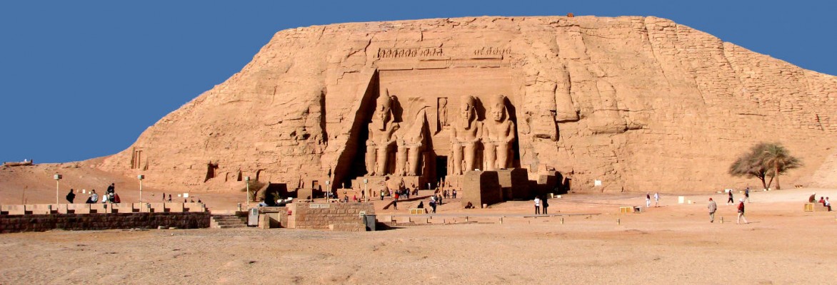 SIAMO AD ABU SIMBEL, UNA LOCALITÀ SUL NILO A SUD DI ASSUAN, DOVE IL FARAONE RAMESSE II FECE COSTRUIRE DUE TEMPLI, SCAVATI NELLA ROCCIA; IL PIÙ GRANDE DEDICATO A RAMSES II; IL PIÙ PICCOLO A SUA MOGLIE NEFERTARI.APPENA ARRIVATI AL SITO, VI COLPISCE SUBITO L`ASPETTO DEL TEMPIO CON I QUATTRO COLOSSI DI RAMSES II.. IL SITO È STATO DICHIARATO PATRIMONIO UNESCO E, PER PRESERVARLO DALLE PIENE DEL NILO, DOPO LA COSTRUZIONE DELLA DIGA DI ASSUAN, NEL 1964 È STATO SMONTATO PEZZO PER PEZZO E RICOSTRUITO QUALCHE CENTINAIO DI METRI PIÙ IN LÀ, INNALZANDO IL LIVELLO DEL TERRENO.